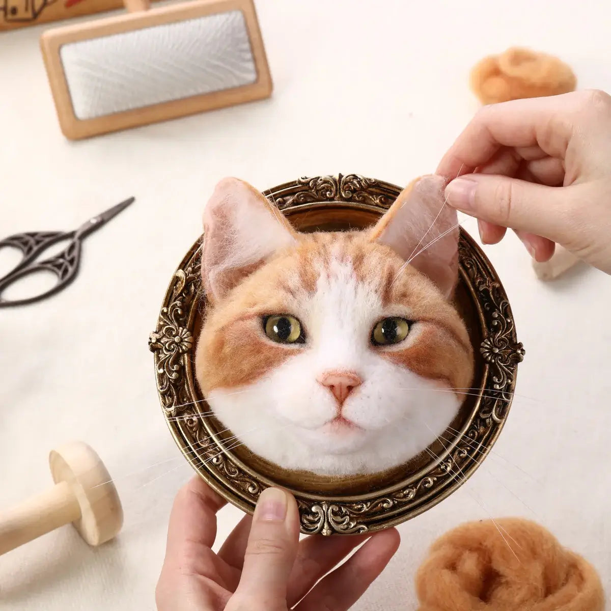 A photo captures a moment, but we capture a presence. Unlike mass-produced toys that look vacant, our artists specialize in "Needle-Felted Expression." We spend hours sculpting the eyes and facial structure to recreate that specific spark and personality you miss so much. We don't just make it look like a pet; we make it feel like your pet.